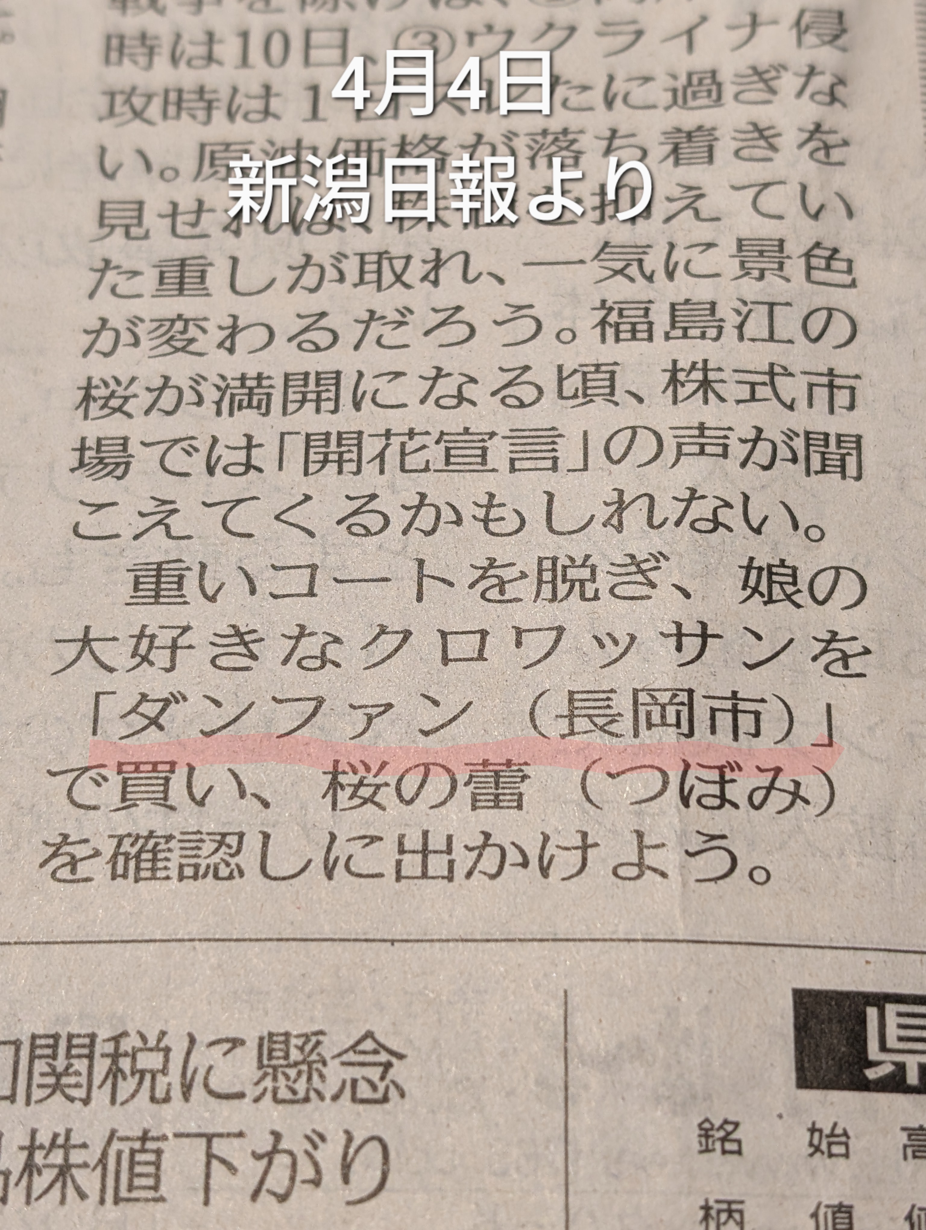 4月4日の新潟日報で当店のクロワッサンの紹介を頂きました。